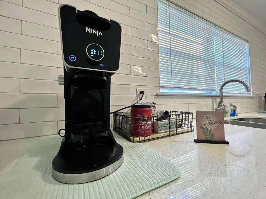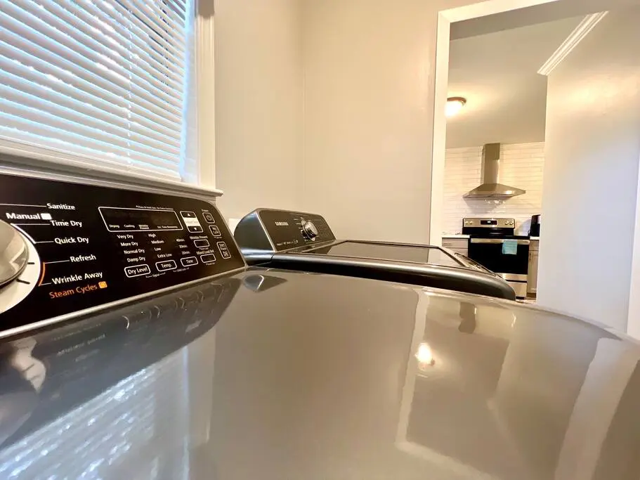 The kitchen is fully equipped with all of the essentials for your stay, including a fully stocked coffee/tea bar, cookware, dishwasher, side-by-side fridge with an ice maker, an air fryer, and microwave. There is also laundry facilities and complimentary detergent pods and dryer sheets.