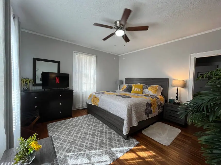 This property is unique because it has been updated yet we kept and refurbished some of the 1950s moldings and the original hardwood floors (refinished). The high ceilings and arched doorways give you a grand feeling in a beautiful and cozy place.