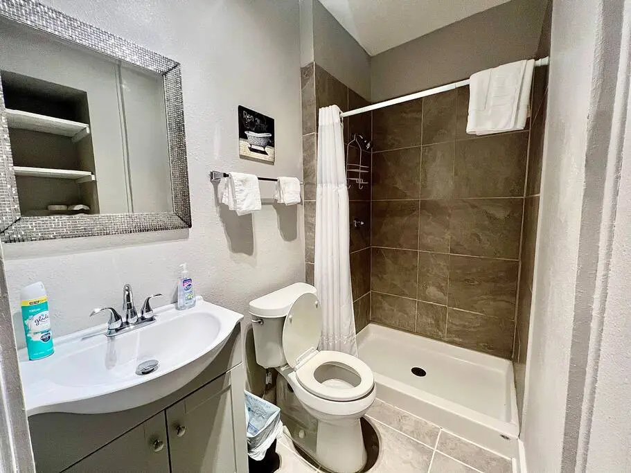 The rooms and common areas are spacious and decorated to make it feel like a home away from home. The entire home has been updated, keeping the nostalgic features of the 1950’s, but bringing a modern eclectic twist to the space. Vibrant colors throughout the house keep things interesting and cozy all at once.